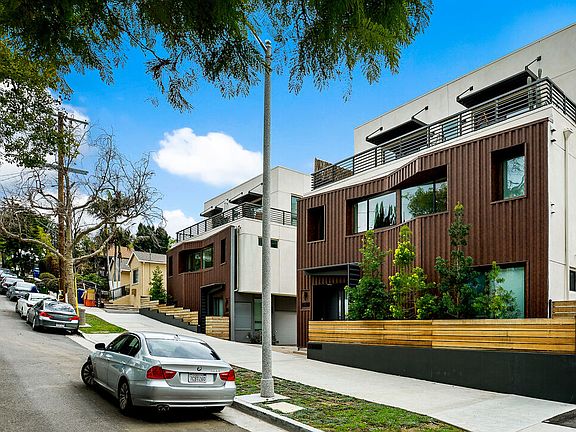 Sophisticated modern design on a quiet residential street, a private 2-car garage w/direct access into the home and no shared walls. Community of ten beautiful residences. All three bedrooms offers its own private ensuite. Open floor living and dinning area make for the perfect entertainment space. A large open space with abundant natural lighting, combining living, dining, and kitchen with quartz counters, guest bathroom, and a balcony off the living area. The third level includes a large primary bedroom and a spacious third bedroom. In-unit W/D also located on third floor. Access the roof-deck where you are taking in gorgeous panoramic views of LA. 86 Walk Score (TM) and puts you near local hot-spots like Whole Foods, Silver Lake Wine, SilverLake Ramen, Tartine. The Silverlake Reservoir, Echo Park Lake, DTLA, Hollywood, and many other LA attractions are just minutes away. Garage is equipped with a 220V Tesla/EV Charging Outlet and the home is pre-fitted for solar installation.