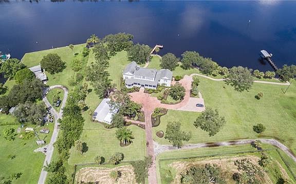 Breathtaking private riverfront estate consisting of 9.4 acres with 320 +/- ft. of Intracoastal river frontage. Main home is 4 bed/5 bath, elegant and charming offering magnificent views of Florida's beautiful Caloosahatchee river along with a vast amount of customized features including gated entrance, private wine cellar, theater room with projector, pine wood floors, outdoor kitchen, 2nd floor balcony overlooking the water, cathedral ceilings, boat dock, and much more! Property is fenced and cross fenced with plenty of room for horses with large steel/wooden gates and large magnificent oak trees throughout! Must see to appreciate the true beauty of this exquisite riverfront equestrian estate.