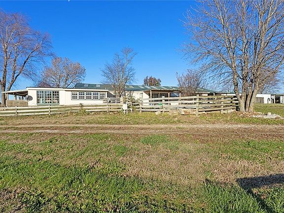 Nestled on an expansive 27-acre equestrian property, this charming 3-bedroom ranch home combines the tranquility of country living with top-tier equestrian amenities and guest accommodations. The home offers a cozy yet spacious layout, ideal for relaxation and entertaining, with large windows that invite natural light and showcase stunning views of the surrounding landscape. Tailored for horse enthusiasts, the property features a one-of-a-kind indoor riding arena that can be viewed from inside the house, ensuring year-round training and riding opportunities. Six well-appointed stalls provide ample space for horses, complemented by two wash bays and two tack rooms for convenient care and organization. Outside, four fenced paddocks with automatic waterers ensure easy maintenance and the comfort of your equine companions, while two additional corrals offer extra space for training or turnout. Completing this exceptional property is a fully equipped 2-bedroom guest house, perfect for visiting friends or staff. This estate is a haven for riders and horses alike, blending functional facilities with serene countryside charm. Property is fully fenced and gated. Mature trees are scattered about. And there is a fully stocked pond. Additional info: 30x30 metal barn with utilities and concrete floor with12' doors on each end, (2) 30x16 lean-tos, (2) 22x15 shelters, heated 2 car attached garage is 24x30, apartment garage is 19x14, and shop garage is 15x28.