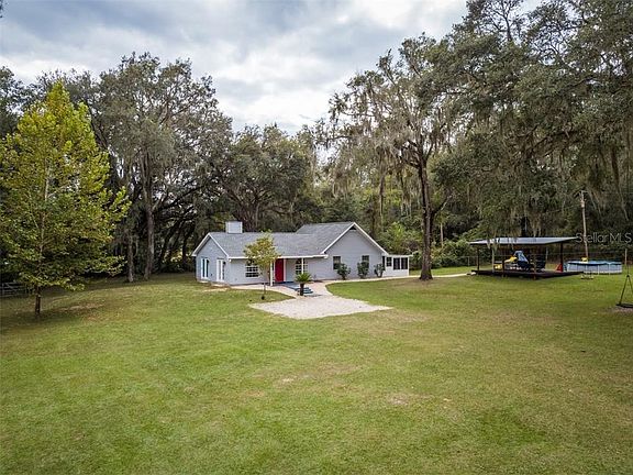 Wait until you see this property! 4.71 Acres. Home is situated over 2000ft from the main road on a flag lot. Property backs up to 356 wooded acres for complete privacy. The family will love the zip lines, ATV riding trails and the ultimate tree house. The beautiful covered pavilion is perfect for entertaining. Zoned A-1, Horses OK. No HOA! New roof in 2018, Newer A/C. Home is move in ready!