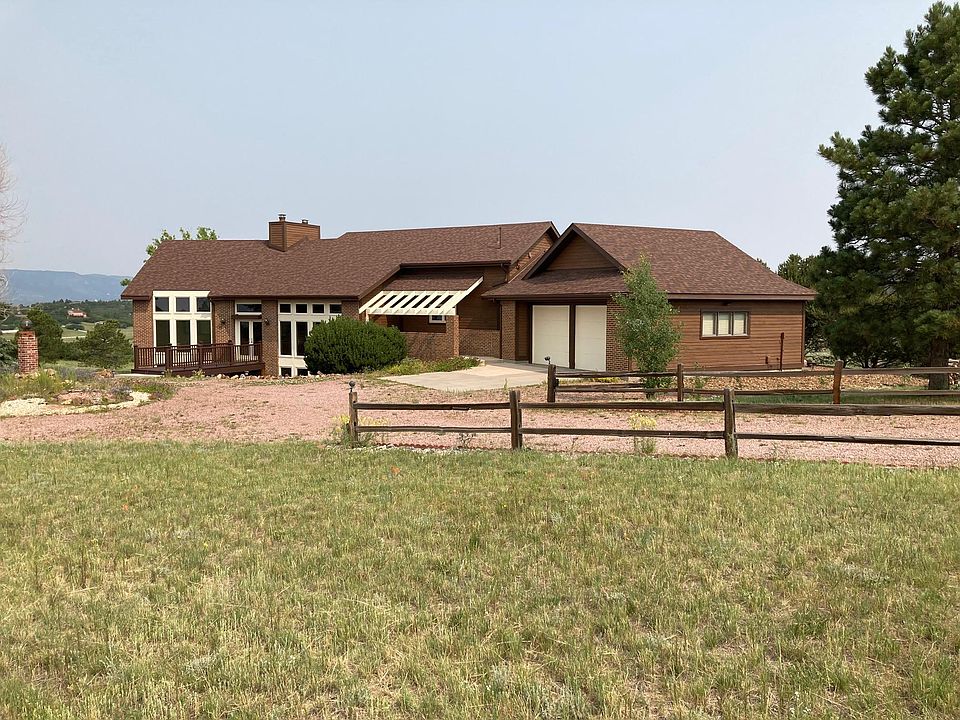4142 sq. ft., 4 bedroom, 2.5 bath, 2 car garage (oversize) home on 5 plus acres overlooking the Pikes Peak Region. Plus G&E. Water and sewer paid. 80921 zip code. Outstanding District 20 schools...all grades within walking distance. Pets: NO cats, dog 20 lbs. or less OK. Bar with game room. Pool table. Spectacular views of USAFA , Pikes Peak and the Front Range of the Rocky Mountains from the living room, bar and patio areas. Covered deck off the bedroom. Solarium/Green house. Non-smoking. Available now. Plus gas (heat and hot water), electric and telecom. Owner pays for water and sewer. No smoking. No Cats; dog under 20 lbs. OK. Marijuana use and cultivation on the premises is PROHIBITED by lease.