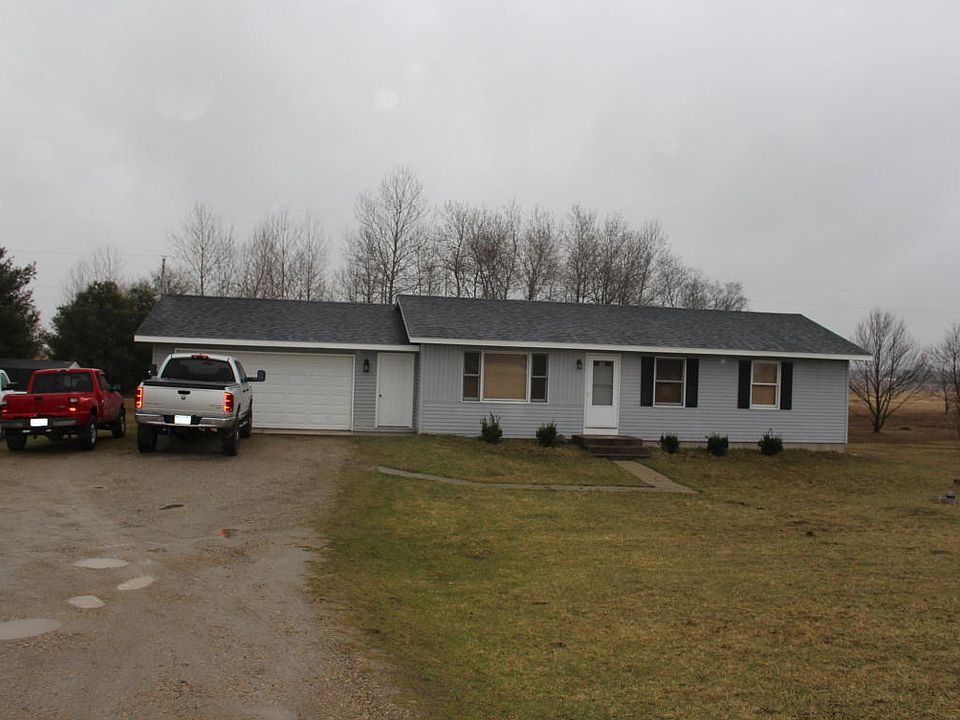 Fully remodeled ranch on quiet 1.25 acre setting. Brand new roof, , kitchen countertops, carpet, paint, finished-oversized garage with new electrical. New drywall in basement ready to be finished. All appliances including washer and dryer remain with home. Immediate possession.
