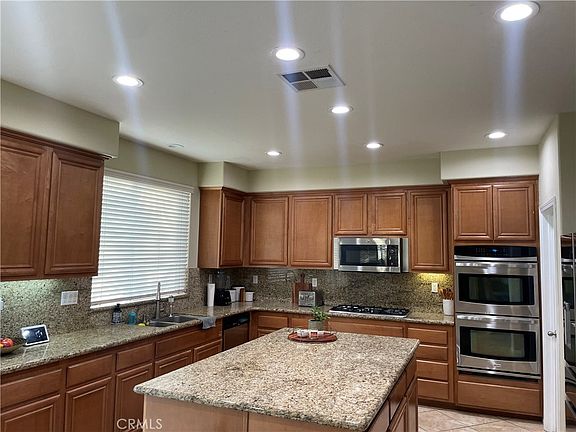Welcome to a delightful two story family home in Eastvale. Offering 3,800 square feet of living space including 5 bedrooms and 4 bathrooms. One bedroom and bathroom are located on the first floor, ideal for overnight guests. Upon entry, you are greeted by the open, formal living and dining areas complemented by crown molding and custom lighting. Entertain effortlessly in this open floor plan including the kitchen boasting a large island with additional sitting, granite counter tops and recessed lighting. The kitchen opens up to the family room flanked with a fireplace, mantel, and an entertainment niche. Relax in the backyard which has custom concrete and ready for you to enjoy during your family gatherings. The upstairs offers an oversized loft with a ceiling fan and recessed lighting. The master bedroom showcases a spacious en-suite with dual sinks, a deep jetted tub, custom walk-in shower and a walk-in closet. 3 car tandem garage with plenty of storage. This home truly as it all! Located near the popular Eastvale shopping center, award winning schools and more. Don't miss this great opportunity!