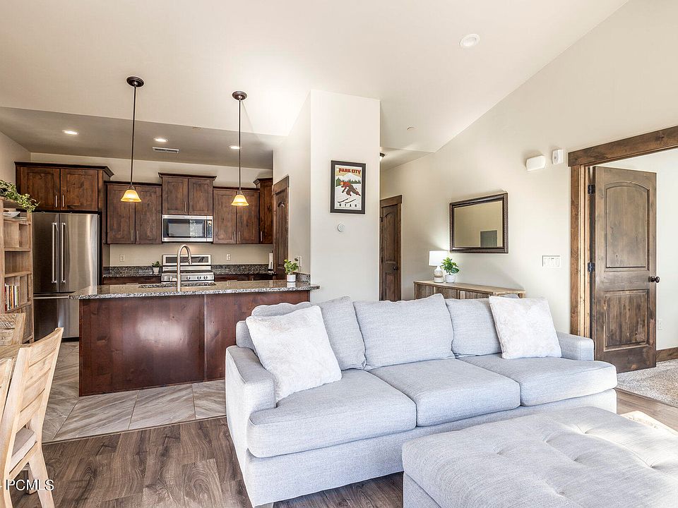 Discover your ideal alpine escape with this beautifully updated Black Rock Ridge unit, just minutes from the charm of the nearby Park City and Deer Valley's East Village. This inviting condo blends modern comfort with rustic charm, offering a cozy haven after a day on the slopes. The open-concept living area features a stone fireplace and large windows that flood the living and dining area with natural light. The modern kitchen comes equipped with stainless steel appliances, granite countertops, and a spacious island for gathering. With new paint, carpet, flooring, lighting, and water heater, this unit is refreshed and ready for its next unit. Black Rock Ridge is a quick walk to the new 9,000 square foot athletic club and Ice Rink opening soon. Whether you're seeking a seasonal retreat or a permanent mountain home, this condo offers the perfect blend of comfort and convenience.