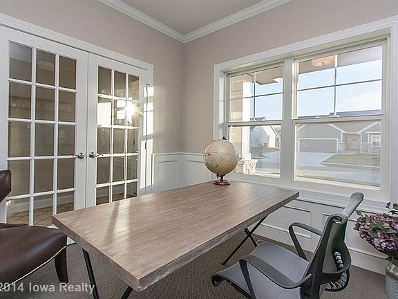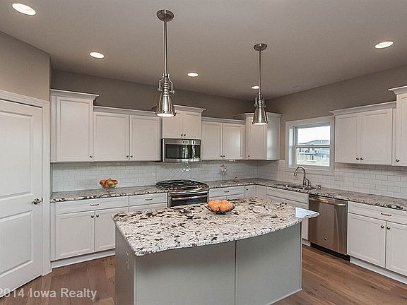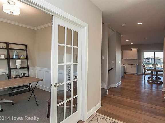 Walkout 2-Story with great curb appeal and open floor plan on fantastic lot with great backyard, irrigation, landscaping and covered low maintenance deck in Bent Creek Meadows. Waukee Schools, City of Urbandale. 1st floor Den immediately welcomes you w/French doors, painted wainscoting & crown molding. 1st floor mudroom offers built-in lockers & coat closet for ample storage. Huge gourmet kit loaded w/painted maple cabinets, large corner pantry, SS appliances, gas range, upgraded hardwood floors, large center island and granite tops. Kitchen is open to Great Room with gorgeous stone fireplace & built-in cabinets. 2nd floor features 4 bedrooms including a master suite with window seat, crown molding, double vanity, tiled shower, large walk-in closet. 2nd floor has several linen/storage closets and a large laundry room. Walkout LL w/9' ceilings, media room, bar and space for full size fridge, 5th BR & 3/4 BA. Come see the difference!