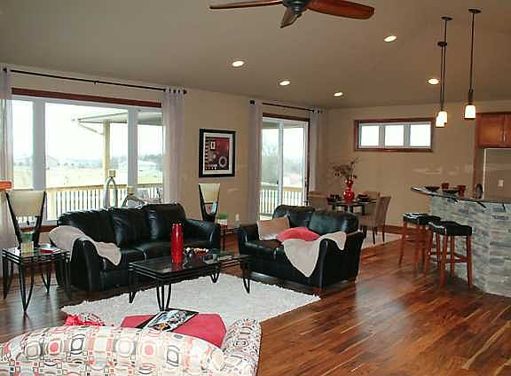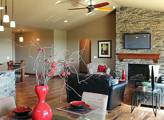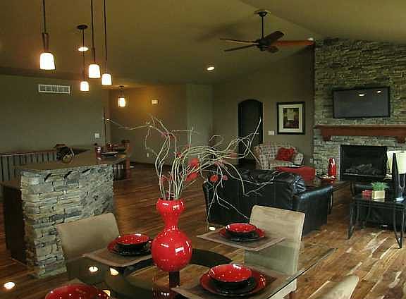Over 3100 feet of finish in this beautiful ranch home, featuring an open vaulted kitchen, dining and living room area. Stone fireplace is a focal point and is complimented by stone backsplash & granite tops in the kitchen. Large covered and uncovered deck adds to a great outdoor entertaining space. Master suite is amazing with tile shower, jet tub and double separated sinks. Large walk-in master closet features a door into the laundry room for easy access. The area off the garage includes a large mud room with built in lockers and closet. The upstairs finish carries down to the lower level. Large walk-in bar greets you and your guests in the finished lower level which also features a large family room with daylight windows. Two other large bedrooms and full bath complete the lower level finish. Other features include soft close dove tail drawers, under cabinet lighting and rrigation for lawn.