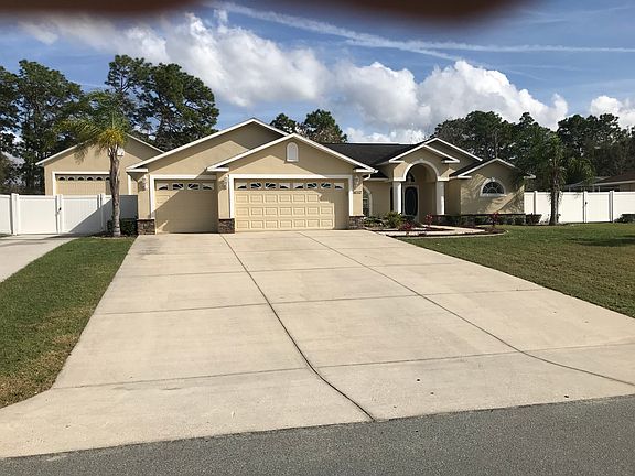 . Located in the Barony Woods neighborhood of Spring Hill, a subdivision of larger homes and sits on a half an acre lot that is fully fenced. Home features high ceilings in living areas and master bedroom. It has a den/home office and a popular split plan, with the master suite on one side of the home and the other bedrooms located on the other side of the home. Enter the oversized Florida Room from either the living area or the master bedroom. Florida room boasts 838 SF of space that you will love for the additional living space it provides. Great for entertaining too! The cook of the house will enjoy the kitchen with wood cabinets and granite counters. There are walk-in closets in the master bedroom and the master bath has double vanity & large walk-in shower. Other extras incl. Large detached 47x29 garage with three 12 foot doors and RV hookup for your camper or large boat with an extra driveway. It has central vacuum system, plant shelves, surround sound, inside wall pest control. A/C replaced in 2017. Don't forget the three car garage with room for cars, bikes, and more. It has a very private large backyard . It has no deed restrictions or HOA fees. It is a nice neighborhood in Spring Hill Florida with easy access to shopping, dining, medical services and all area amenities. Tampa and Tampa International Airport are easily reached via the Suncoast Parkway in approx. 45 minutes. View by appointment only 727 919 9800