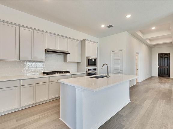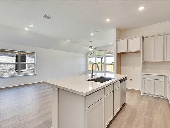 Welcome to the single-story Juniper floor plan, a spacious and thoughtfully designed home perfect for families and those who enjoy versatile living spaces. This plan offers four bedrooms and three full bathrooms, providing plenty of room for comfort and privacy. The upgraded kitchen features built-in appliances and a layout designed for both efficiency and style, making meal preparation a pleasure. The primary bathroom is well-appointed with a dual vanity and a shower area that includes a built-in bench and a durable mud pan base, combining functionality with comfort. Outside, the home boasts a full sprinkler system and freshly sodded yards in both the front and rear, ensuring a vibrant and well-maintained landscape year-round. This home offers a perfect balance of indoor and outdoor living and is scheduled to be available in July 2025. For more information on finishes and design options, please contact the sales team.