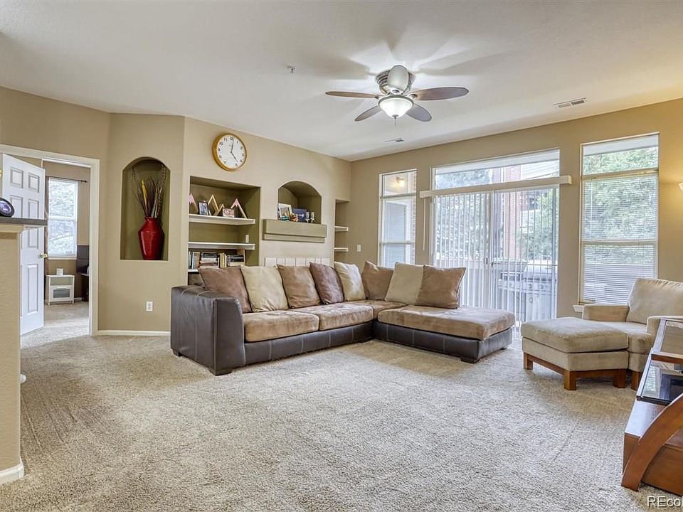 Ground floor ADA compliant condo in Cherry Grove East II with 2 bedrooms, 2 full bathrooms, central air conditioning! Walk to RTD 2nd and Alameda Light Rail Station, Highline Canal, shopping, entertainment, dining, City Center, and Aurora Town Center! Location, Location, Location! Updated kitchen with fresh paint, newer appliance, counter, backsplash, painted cabinets. Open living area with gas fireplace, built-in shelves, newer carpet, patio access. Large covered patio with an additional storage closet. Spacious master suite with a walk-in closet an updated private full bathroom. The 2nd bedroom with an updated full bathroom. The laundry are is in the unit, the washer and dryer are included! The HOA includes swimming pool and hot tub! Within 2-miles of elementary, middle, and high schools. Conveniently located close to I-225, I-70, DIA, Childrens Hospital, Rocky Mountain Regional VA Medical Center.