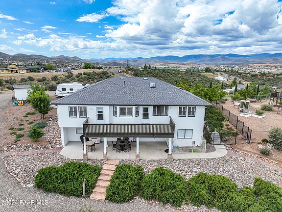 Welcome to your dream retreat nestled in the heart of Dewey on just over 2 acres! This beautiful home offers a perfect blend of comfort, tranquility, and stunning natural surroundings. Three bedrooms/two bathrooms, spacious living room, dining area and kitchen on the main floor with a view from every room. This home has a great, finished, walkout basement with a bedroom, huge closet, nice bathroom, kitchen, a HUGE pantry/storage space and an awesome patio with beautiful views for entertaining and bar-b-ques! NEW ROOF (2022), NEW exterior paint (2024), OWNED Solar, fenced yard for pets, plenty of room for gardening and an expansive backyard for enjoying the beautiful Az weather.