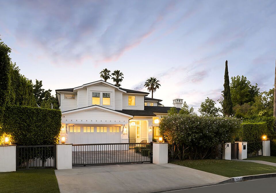 Nestled south of the boulevard in Sherman Oaks, this Cape Cod-style home is a masterpiece curated by renowned celebrity designer Jeff Lewis. Boasting five bedrooms, each with its own ensuite bathroom, the residence offers ample space for comfort and privacy. It includes an office for work, a custom theatre room for entertainment enthusiasts, and a detached gym that doubles as a guest unit, complete with bathroom facilities and included equipment. A standout feature is the one-of-a-kind three-part tree house connected by bridges, adding a whimsical charm to the property.Technological sophistication is evident throughout the home with a Control 4 system for seamless automation, ensuring convenience in managing various aspects of daily living. The kitchen is a chef's delight with high-end finishes, complementing the spacious layout designed for hosting gatherings. Outside, an expansive entertainer's backyard beckons with a swimming pool and spa, perfect for hosting large parties or relaxing in private. All tech devices and TVs are part of the package, enhancing the integrated living experience.Situated on a generous lot exceeding 13,000 square feet, the residence offers proximity to shopping, dining, and easy access to the Westside, making it a coveted location in Sherman Oaks. This home represents a harmonious blend of luxury, functionality, and entertainment, promising a lifestyle of comfort and sophistication.