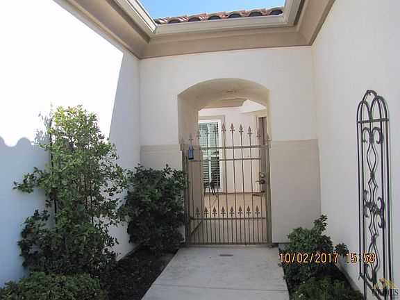 Solera at Kern Canyon, Active Adult Community. Popular Spruce floor-plan with gated front courtyard. 2 BR's plus office/den, 2 bath. Great room with gas fireplace open to dining room w/slide door to covered patio Kitchen w/granite counters, gas stove, extra large pantry and sliding door to front courtyard. Master bath with soaking tub, shower, large walk-in closets. Indoor laundry w/sink and cabinets. Tile flooring that looks like wood throughout except bedrooms. Plantation shutters and fans. Over-sized 2 car garage. North/south exposure w/covered patio and easy to maintain backyard. Resort style living with clubhouse, gym, pool, spa tennis and bocce courts, interest groups, clubs and lots of activities.
