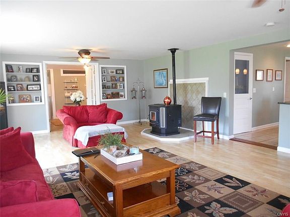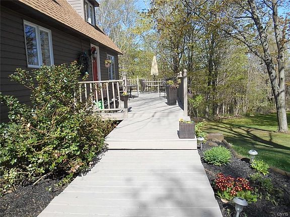 Your peaceful corner of the world found here! Nestled on 3+private acres, this 2,636 sq. ft. immaculate Colonial w/quality updates truly Turn Key! Features stunning Chefâs Kitchen, ceramic tile floor, island Breakfast Bar, Granite counters, Cherry cabinetry, opens to FamilyRm w/pellet stove; French Doors to workout rm or Home/office w/sep entrance. Tranquil views from Living & Dining Rms. Four 2nd Fl Bedrms, loads of closet space, half Bath & spacious Office/Study. Interior freshly painted 2018-19, Maint-free vinyl ext, new Roof 2017, 24'x32' Pole Barn/Garage. Wraparound deck overlooks beautifully landscaped yard & gardens & above-gr pool. Property offers something for everyone-private wooded setting yet close proximity to Village concerts, 4th of July celebration, Farmer's Market & more!