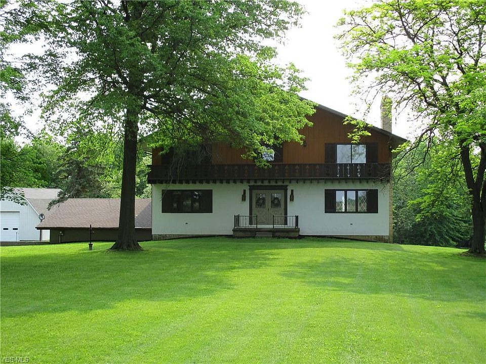 Imagine coming home to your own Chalet on 8 acres. This home has the acreage for you to do anything whether to farm or raise animals, plus woods and a 50 x 30 barn for your toys or turn into a stable. This 4 bedroom, 4 bath with a sauna has everything you could want. The large kitchen has an oversized island and a 16 foot wall of cabinets as well as a great view of your land. The master bedroom has an electric fireplace, large master bath and sliders to balconies on the front and back of the house. The other two bedrooms have access to the balconies also. The first floor bedroom could be an office and there is a full bath on the first floor. The family room has a beautiful stone gas fireplace as well as a wet bar and full bath on this level and has the sauna attached. There are two sets of stairs from the lower level to the first floor. The home has a new roof and is wired for 200 amps. The 50 x 30 barn is perfect for your toys or could be converted to stables. It also has a new roof. This is the perfect home for a large family with plenty of room to entertain.