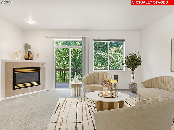 Townhouse with Modern Comforts and Ideal Location! Discover your new home in this beautiful townhouse, featuring a main level with an inviting open floorplan. The living room, complete with a cozy gas fireplace, extends to a spacious 19' deck that overlooks a serene open space owned by the HOA that's perfect for relaxation and entertaining. The kitchen offers lots of counter space and a charming eat bar, and comes equipped with all major appliances: range, dishwasher, disposal, microwave, and refrigerator. A convenient half bath on the main level adds to the functionality. Upstairs, you will find two generous en-suite bedrooms, each with a walk-in closet and private bathroom. The laundry area, with an included washer and dryer, is also conveniently located on this level. The entrance level features a garage and a large attached office or storage space, providing versatile options to suit your needs. Situated close to public transportation, restaurants, shopping, parks, schools, the Westside Regional Trail, Murray Hill Market and Murry and Scholls Town Center, this townhouse offers both comfort and convenience.