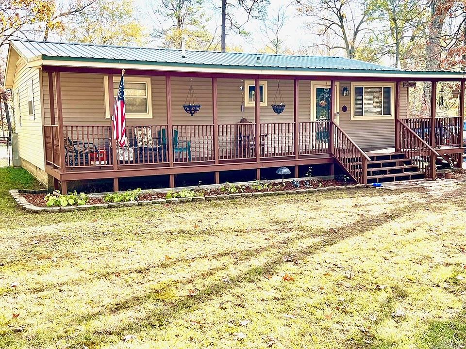 Country charm starts with the metal roof and huge covered front porch and takes you all the way through! Formal living space greets you as a working office! Find 2 spacious bedrooms, full bath and enormous laundry room to your left of entry. Through the living room enter the kitchen with stainless steel appliances, tons of storage and beautiful backsplash, plenty of room for an island and breakfast table. Large family room hosts family dining and living area for great gatherings, and access to backyard with patio. Main bedroom features a walk in closet and full bath. Kitchen and both bathrooms are updated! Flooring is updated throughout the house. Out back find a nice metal frame shop with two overhead doors, electricity, central heat and air conditioning and water plumbed to exterior faucet. Well maintained home, all on almost a ½ acre lot with rural location, convenient to Maumelle amenities, shopping and access to AR river. See agent remarks.
