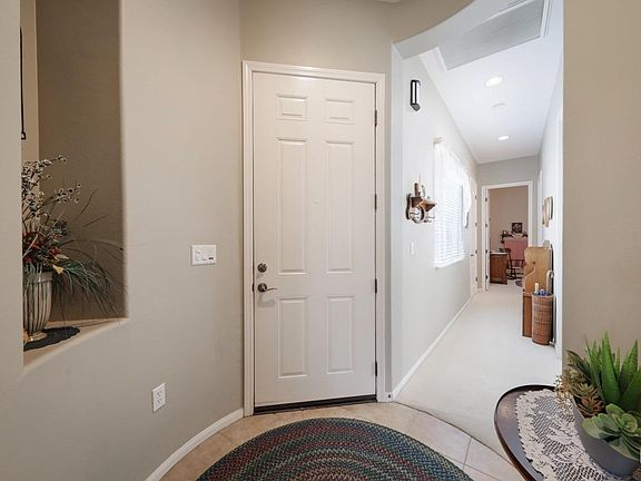 Wonderful move in ready home in a 55+ adult gated community. This home is a split wing 2 bedroom, 2 bathroom. There is also an office with a closet that could be used as a 3rd bedroom. Open concept kitchen overlooking the living and dining room. Beautiful landscaped backyard with numerous fruit trees and covered patio. The community features a pool, clubhouse, and tennis courts.