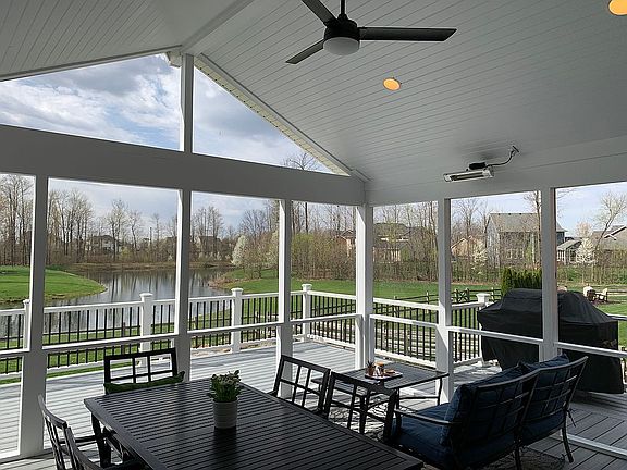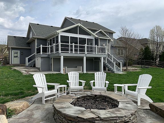 Welcome home to one of Arbor Homes finest! 14317 Sandstone features a gorgeous wide front porch which allows homeowner to sit, relax and visit with neighbors and friends. This home has a gourmet chef's kitchen with a double wall oven and gas range for those large family meals. From the kitchen, the chef can entertain guests both in the living room and hearth room while visitors enjoy themselves. Master bedroom has an expansive walk in closet and free standing soaker tub with large tiled shower. Upstairs has 3 bedrooms that provide plenty of space and large closets. The upstairs bonus room could easily be converted into a 5th bedroom, but is being used as a playroom with a half bath right outside the door. Homework is a breeze with builtin desk and shelving on the second floor for quiet study time. The full finished basement has a media room used as the family room with plenty of large windows, bar, and rec area. Family room is equipped with surround speakers, projector spot, pull down movie screen, and room darkening blinds for when you are enjoying a movie during the day. Downstairs also has 3 rooms being used as a craft room/office, yoga and exercise room, but could easily be converted into extra bedrooms with a full bath right down the hall. Storage is a breeze with large storage room and private stairs that lead from the basement to the 3 car garage. This stunning home sits on a gorgeous pond lot landscaped by Bruce Ewing with an oversized screened in porch with bbq bump out (added in 2021), deck and bonus covered patio below that also features a pad for a hot tub - electricity already added. A brick paver patio, fire pit, and fenced in yard make this an outdoor oasis.