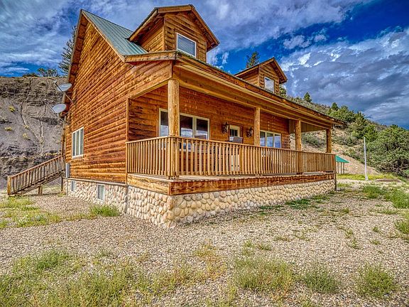 CUSTOM CABIN ON ALMOST 4 ACRES WITH UNSTOPPABLE VIEWS! Backs to National Forest. This home comes Fully furnished right down to the Deer Mounts. 2 Bedrooms 1 Full bath on the man level. Stairs lead up to an oversized private loft with a guest bathroom with sink and commode. Home has a basement also with has a ton of storage and an additional bathroom. 2 sets of washer and dryers. One set is in the basement. Large Deck overlooking the valley. Large Metal Carport and a shed on property.