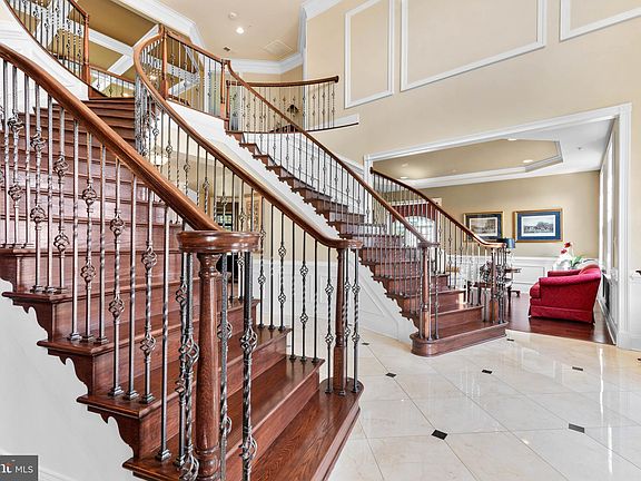 Stunning 9,459 sqft brick and stone custom colonial located on 1.06 acre homesite in The Reserve at Triadelphia Crossing is embodied with luxury and sophistication. Accenting this home is a coffered ceiling, tray ceilings, wainscoting, beautiful trim and moldings, recessed lighting and an interior climate controlled by three zone heating and air conditioning. Wrapped in a framework of elegance and comfort, this fine residence offers the very best in modern living beginning with a delightful grand foyer showing marble flooring and fine balusters lining the dual butterfly staircase revealing views of this splendid home. A notable room is found on the lower level in a 14x23 theater room including tiered theater seating, a projector, and oversized screen. Exterior amenities on this tree-lined property include a tiered paver patio with an upper tier showing a pergola, and a lower tier showing gas twin Eagles grill with a granite bar area, a built-in fire pit, and sittable retaining walls. Live the good life in this quintessential location between the Baltimore and Washington metro areas conveniently located near country clubs, golf courses, shopping, restaurants, airports, and commuter routes giving easy access to the best of everything. A grand foyer invites you and your guests into the enchanting home showcasing splendid formal and casual rooms, enriched wide plank hardwoods, plus Palladian windows adding plentiful natural light. You are immediately drawn from the foyer into the spectacular spaces featuring a formal living room capped by a tray ceiling, followed by a revitalizing conservatory aligned with an array of sparkling windows, a gorgeous library with a bay window and built-ins, and an elegantly trimmed dining room complete with a tray ceiling and butler’s pantry. The hallway flows to a column framed two-story great room adorned with stacked crown moldings, a coffered ceiling, a floor to ceiling stone surround fireplace with designer trim and mantel, multi levels of windows, and a casual staircase to the bedroom level. Perfect the art of gourmet cooking in the chef’s kitchen boasting a huge center island with an elevated breakfast bar and a hand sink, granite counters, custom tile backsplash, raised panel and glass front ¬¬¬¬¬cherry cabinetry, JennAir stainless steel appliance suite including a 5-burner gas cooktop range, a beverage fridge, a walk-in pantry, a planning desk, and a casual dining space stepping out to the top tier patio with a pergola. Next to the kitchen is a brilliant bayed sunroom with an architectural ceiling, a drop fan, centered by an ambient gas fireplace, with access to a second breakfast bar positioned at the beginning of the room. Owner’s suite presents a deep tray ceiling, a walk-in closet, a see-through gas fireplace introducing a sitting room, recessed lighting, and a luxe bath displaying a tray ceiling, dual vanities with dressing tables attached, additional closets, an oversized shower with bench seating and double heads, and a soothing central jetted tub for total relaxation. Completing the upper level is a guest bedroom with an attached bath, another bedroom including 2 walk-in closets and attached bath, an attached 13 x 9 sitting room, and a fourth bedroom displaying a 9x14 sitting room, two walk-in closets, and a full bath. Enjoy additional leisure and entertainment space found in the lower level offering a choice wine cellar and tasting room, a rec room with a walk-up to the yard, a games area, a powder room, an exercise room, a theater room with stadium style seating, and a large storage area perfect for your treasures!