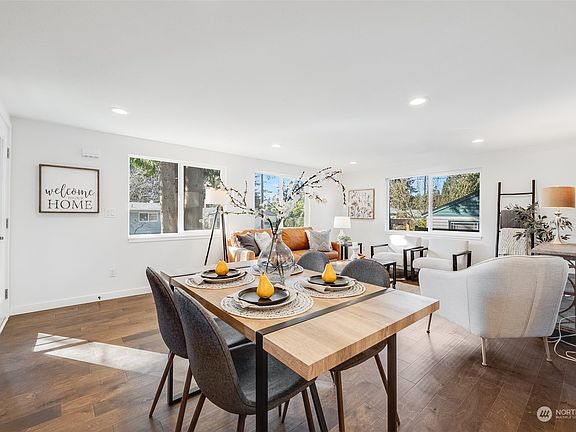 Step into luxury in this beautifully remodeled Seattle home! Located on a cute lot, in a neighborhood offering both the tranquility of a secluded suburban neighborhood and proximity to Seattle's urban amenities. Thoughtful designer finishes with warm & inviting spaces that exude luxury. Easy-living in the airy openconcept living, kitchen, and dining areas. Kitchen with mosaic tiled backsplash, new SS appl, shaker cabs, quartz counters, and breakfast nook. New flooring, doors, trim, int & ext paint. Exterior updates also include a new sewer line, electrical meter, siding, and all-new landscaping. Walking distance from parks, 145th St light rail, and easy access to I-5, 520, DT Seattle, Bellevue, and more. Pre-inspected!