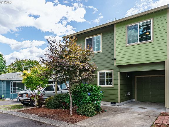 Great Starter Home or Investment property on a Cul-de-Sac. Townhome Style with No HOA dues only attached to a 1 other at the garage. Kitchen w gas stove and refrigerator opens to a living rm w gas fireplace and slider to a back patio. Primary suite has a full bath and a walk in closet. Home feels bigger and has a functional layout with ample storage. Recent Upgrades include: NEW Roof, Siding, Furnace, AC, water heater and some laminate flooring. Fully fenced private yard w patio and large tool shed for extra storage. [Home Energy Score = 8. HES Report at https://rpt.greenbuildingregistry.com/hes/OR10221338]