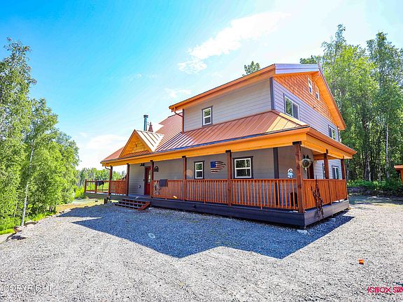 The weekend get-away you have to see to believe! No detail has been overlooked in this beautiful and functional riverside home, shop and guest quarters. Main house is 4450sf of stunning craftsmanship, made for entertaining and cozy enough for just the family. Soaring ceilings with tongue and groove accents, open floor plan with flowing river views.HOUSE FEATURES: ~ Covered porch wraps around to private deck facing the river; ~ Decking and siding are PVC based and will not rot, fade, chip or need painting; ~ Metal copper-colored roof is as functional as it is attractive - perfect for the winter snow loads in Willow; ~ 2-car carport with attached storage space; ~ Automatic generator by the carport runs the entire house; ~ Lower level family room with full bar and WINE CELLAR; ~ Covered lower patio with built-in heat lamps to enjoy all seasons; ~ Wood stove adds warmth and ambiance; ~ Master suite on main level, two bedrooms upstairs with jack-n-jill bath; ~ Bonus loft area for kids and kids at heart, perfect for hanging out without the adults; ~ Spacious kitchen, large island, quartz countertops; ~ Custom wine bar with two wine/beverage refrigerators; ~ Custom safe room; ~ Extra large mechanical room SHOP FEATURES: ~ 2498sf of fabulous shop space; ~ Half bath and storage area; ~ Overhead doors: 10x10, 12x12, 10x10; ~ Floor drains for each bay; ~ Windows in the overhead doors for additional light; ~ Commercial lighting throughout; ~ Upstairs bedrooms are spacious 20x20 with jack-n-jill bathroom and extra storage; ~ Back of shop has more storage and propane tank shed for easy access and protected from snow; ~ Areas cleared around the shop for equipment, etc; ~ Covered porch with T&G soffit for shop and upstairs entrances; ~ Shop and upstairs have separate entrances, shop can be locked separately from upper bedrooms. PROPERTY FEATURES: ~ Gated subdivision with maintained roads; ~ 2.25 acres with Kashwitna River frontage; ~ Subdivision perks: access to cross country ski trials, community park, fat-tire bikes to use, Big Su access; ~ Hop, skip and a jump from the Big Su river (minutes via the Kashwitna or local access point); ~ Majority of the lot is level and usable, gently sloping to the river; ~ Fish from the shore; ~ Snowmachine from the property to almost anywhere - trails galore everywhere in the this area.