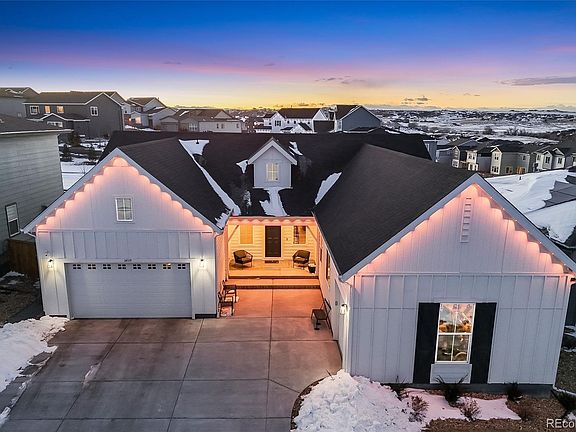 Step into this stunning Modern Farmhouse, a spacious ranch-style home in the desirable Trails at Crowfoot community. The home's striking exterior sets the stage for the exceptional design within. Inside, wide-plank luxury laminate flooring, soaring ceilings, and a neutral color palette welcome you. The living room features a dramatic floor-to-ceiling tiled fireplace and upgraded 4-panel sliding glass doors that flood the space with natural light. These doors open to a covered patio overlooking a low-maintenance turf yard, professional landscaping, and serene open space views. The gourmet kitchen is a centerpiece, boasting a grand center island, custom two-tone cabinetry, quartz countertops, and a walk-in pantry. Top-tier appliances, including a 48" Wolf gas range and KitchenAid suite, make it a chef’s dream. The main-floor primary suite is a luxurious retreat with dual walk-in closets and a spa-like ensuite featuring a standalone tub and quartz countertops. Two additional bedrooms share a Jack-and-Jill bath, while a home office, powder room, and large laundry room complete the main level. The finished basement provides additional space with a sprawling recreation room, a private fourth bedroom, and a full bath. A versatile media room adds to the home's entertainment options. Thoughtful upgrades include automatic window shades, modern stair railings, and matte black hardware. The backyard offers a covered patio and fenced landscaping, perfect for enjoying the outdoors. Situated on a quiet street near a neighborhood park, this home is steps from the community’s resort-style amenities, including parks, trails, a pool, pickleball courts, and disc golf. Move-in ready and better than new, this home includes all appliances, window coverings, and completed landscaping.