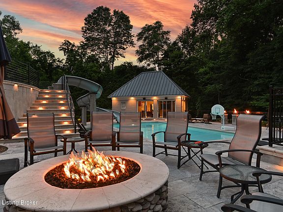 Escape to the ultimate oasis of privacy, elegance and comfort. Upon arriving at the gated entrance of this exclusive enclave, the tone has been set for expecting excellence. The approach to this residence winds up a circular drive where you will arrive at the two-story porte-cochere. Upon entering the home you will experience soaring ceilings and an open floor plan adorned with beautiful classic moldings and handsome inlaid hardwood floors. The first floor primary suite is accessed via a private hallway, lined with built in art nook shelving and drawers. Features of this special room include, a fireplace with architectural design, a primary bath with barrel ceiling, wrap-around shower, and a garden tub beneath a cozy gas fireplace. There is a wall of glass doors allowing an abundance of natural light to flood the room. Once inside you will find a private juliette balcony with awe inspiring views of the glistening pool and woods. Directly off the primary is a spacious room with a sauna and 2 walls of windows. The possibilities of this room are endless and could easily be customized to fit the needs of any family - whether that be a relaxing zen retreat, a nursery or your very own private office. Directly off the foyer lies the dining room to one side and an office/library to the other. As soon as you enter the office through stunning glass paned french doors, you can feel the warmth of the woodwork. Floor to ceiling shelves enhance two walls, one with a gas fireplace laiden with mantel detail that climbs to the ceiling. The kitchen, the heart of the home, has undergone a complete remodel that will make anyone swoon. Just to mention a few features of this amazing space is the large island with African Marble and a built-in cutting board, stunning custom cabinetry with wood pull outs, lift station for appliances, Thermador appliances including 30-inch each side by side refrigerator and freezer, chef's gas stove, double ovens, 2 warming drawers, 2 dishwashers, drink refrigerator and stylish open shelving with up lighting for a final touch. There is also a built-in wood dining bar and table. The hearth room off the kitchen is a wonderful area to relax. This special area includes vaulted ceilings, a corner gas fireplace, and floor to ceiling windows with transoms and access to the screened porch. The open floor plan of this spacious home allows for entertaining parties large and small in numerous areas including the amazing two story Great Room also with floor to ceiling windows, a gas fireplace in marble surround, built-in shelving with cabinets and a wet bar. Directly off the great room lies a spacious screened porch with an impressive 48" Alfresco grill, refrigerator, and plenty of storage cabinets with marble overlay. From the screened in porch, you can walk directly out to the upper deck to dine alfresco with amazing views. Additionally located on the main level is a private guest half bath, laundry area with a folding table and sink alongside a drop zone for coats, books, packages etc. On the second floor you will find a comfortable central gathering area and three bedrooms all included with their own ensuite baths. Descend to the walkout lower level to find an impressive array of features that are sure to make your friends never want to leave. Complete awe is the feeling inspired by the exposed brick walls and arches that have a two sided fireplace situated impressively in between. This magnificent space includes a tiered seating media room, family room, a room that accommodates a variety of game tables (including a pool table), a beautiful bar with seating, a 500 bottle wine cellar complete with a chiller, 2 bedrooms and a full bath. One of the bedrooms has been converted into gym space with the addition of a rubber floor. This amazing indoor entertaining area is complimented by an equally stunning outdoor entertainment area. The current owners have done an extensive remodel to the outdoor living area of the backyard, that is made to impress. There is a gorgeous sparkling and heated 20' x 36' swimming pool that includes a 40-foot slide, diving board and steps to enter by. The built-in misters will work to keep you cool in the heat of the summer and the deck made from travertine pavers seamlessly surrounds the entire area. On one side of the pool deck there are three natural gas cauldrons providing ambiance for a twilight swim, but when pool time is over... you may find yourself relaxing by the natural fire pit or wanting to take a dip into the eight person jacuzzi tub. Other outdoor entertainment includes a putting green, Bocce court and basketball goal. Not to be overlooked is the new completely remodeled pool house beautifully finished with a relaxing room to watch TV, a full bath, stylish built-in cabinetry, refrigerator, dishwasher, sink and multi bed loft sleeping area. Other amazing features of this home are a 5 car garage, irrigation, landscape lighting, generator, 1,100 of invisible dog fence, sophisticated security system, zoned heating and air and installed wifi to control multiple systems of the home. A full list detailing the upgrades and improvements is included with the documents online. Situated on 3 beautiful and private acres, this truly is a one of a kind residence!