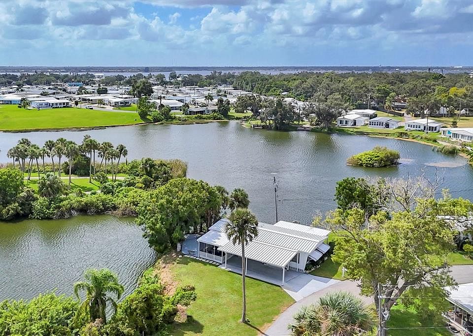 Nature Lover’s Paradise in Tidevue Estates! Enjoy breathtaking lake views from every angle of this beautifully updated home in the sought-after 55+ land-owned community of Tidevue Estates. In 2025, this property underwent a full renovation including a new roof, insulation, moisture barrier, electrical meters, replumbing, sewer vent, AC ductwork, thermostat and return, and ¾" treated plywood subflooring. The kitchen is a showstopper, featuring quartz countertops, custom soft-close cabinetry, a beadboard backsplash, shiplap accents, island storage, and new sink and faucets. Corelux vinyl plank flooring and 2" blinds run throughout the home for a seamless, modern look. The primary bathroom features a custom tile shower for a spa-like experience. Step outside to your private outdoor oasis—complete with a screened lanai, open patio, and covered porch—all surrounded by majestic oaks and palms. The extended carport adds 4 extra feet of convenience. Best of all, you can fish for bass right from your backyard! Low HOA of only $600 annually. Pets are not permitted. Plenty of activities to keep you busy in this community. Updated fitness room. Meet friends and make new ones for a game of indoor pickle ball, bocce ball, shuffleboard or take a water aerobics class. Join the Golf League. Take a bike or golf cart ride to Veterans' Park to watch the wildlife and sunset. Ellenton Premium Outlet Mall, restaurants, and medical facility's just minutes away. Easy access to I-75. Just a short drive to our beautiful Gulf Beaches. Tidevue Estates offers a vibrant lifestyle with no lot rent and a strong sense of community. This is Florida living at its finest!