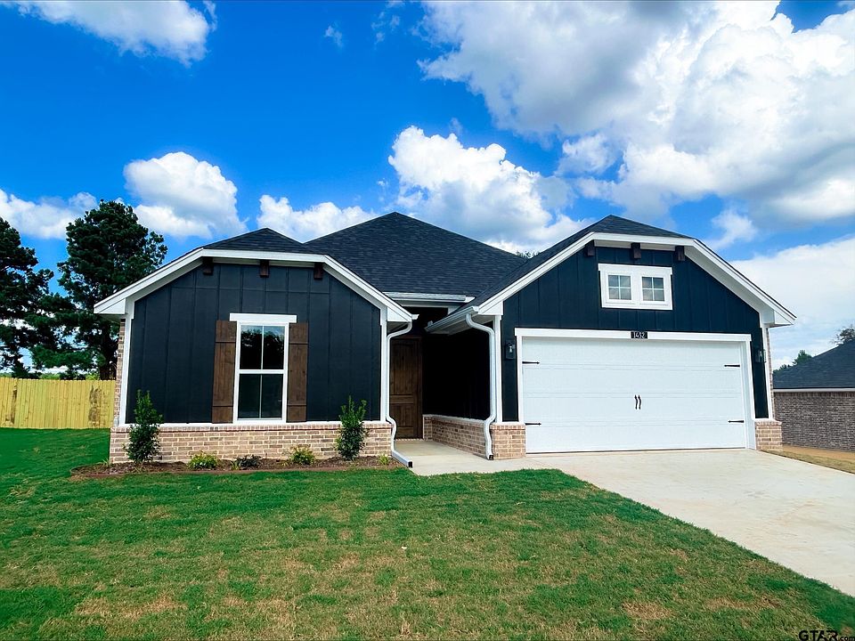 This brand new 4 bedroom, 2 bath home is move in ready! Interior-designer inspired, this top-rated energy efficient home offers a very comfortable open floor plan with lots of natural light, luxury vinyl plank floors, crown molding, electric fireplace, stainless steel appliances, and 3cm granite counters. It also features a walk-in tile shower in the master bath, Smart Home features throughout, and a stylish Progress lighting package. The exterior includes full Bermuda sodded yard, a digital sprinkler system, full privacy fence with huge backyard, accented front elevation lighting, decorative front elevation landscaping, and much more! If you are looking for quality, style, and value, the destination is definitely Eagle Meadows. Ideally located near US-69 & IH-20, Eagle Meadows offers easy access to acclaimed Lindale schools, and many dining and shopping options. *Additional upgrade options are available.
