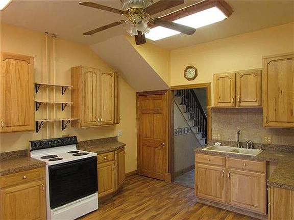 This Victorian home has so much character. Starting with the uniquely painted exterior and the wrap around front porch. The kitchen has custom hardwood cabinets. The living room, dining room, and bedrooms have nice hardwood floors. A beautiful stained glass window as you go up the stairs. All three bedrooms are upstairs. The master has a walk in closet and an extra closet.