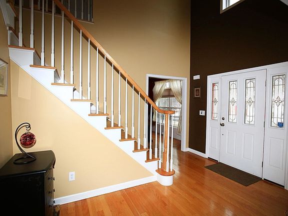 This 6yr old home has been beautifully maintained and tastefully decorated. Upgrades include: chair rail & inlay hardwood fl in the dining room. Oak treads on the stairs, h/w on 2nd floor hallway & covered front porch. 9ft ceilings in the basement which is ready to be finished. 4th bdrm upstairs can also be used for playroom or bonus room. 2 story paver patio w retaining wall. 12X20 Shed which matches the home allows for plenty of storage.