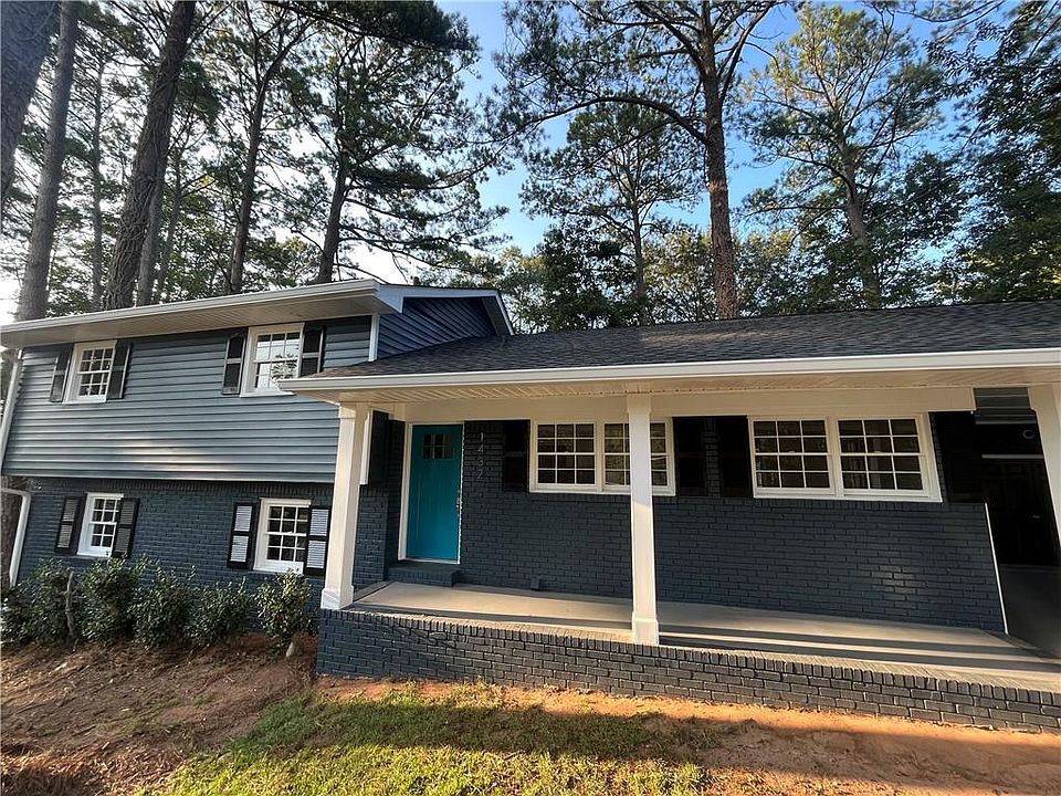 This newly renovated split level home is ready for your enjoyment. The upper level boasts 2 spacious bedrooms, hardwood floor throughout and a full bathroom w/ dbl vanity. The main level features a large living room and new kitchen with granite countertops. The lower level presents a master suite inc. 1 large bedroom, a Livingroom and fireplace, and a newly remodeled bathroom. Great neighborhood with close proximity to parks, major stores, restaurants, and I75/I285