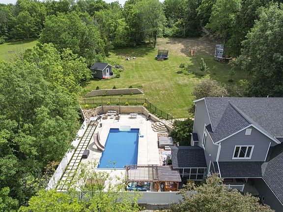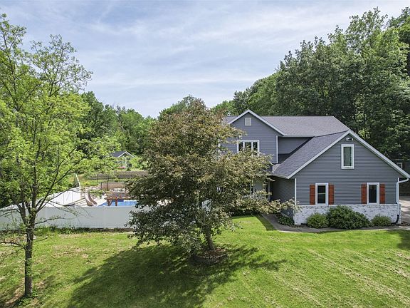 A rare opportunity to own a highly desirable acreage featuring an amazing in-ground pool, hot tub, nearly 3 acres of privacy, and over 3,100 finished square feet of living space. This 5-bedroom, 3.5 bath home offers 3,141 finished square feet on 2.9 acres with numerous recent upgrades, including a new roof in 2022, newer water heater and water softener, new shades, and garage heater. Other interior improvements include new flooring in the basement, upstairs hallway, and primary bedroom. The expansive outdoor space is ideal for entertaining, relaxing and enjoying the privacy of acreage living while remaining withing convenient reach of town. Buyer to verify schools, sq footage, and taxes