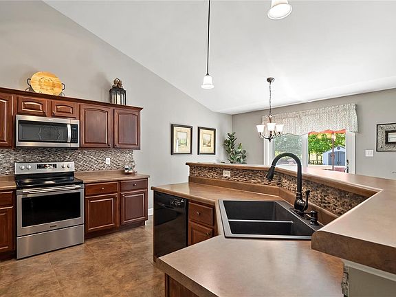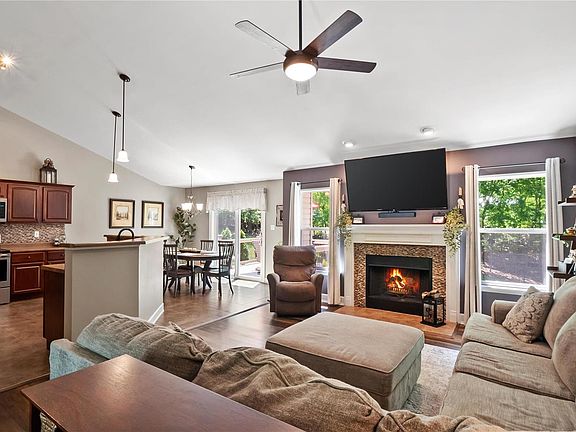 OPEN HOUSE CANCELLED. This pristine and meticulously maintained ranch features 4 bedrooms, 3 full baths, 2 car 20x20 attached garage, fresh paint and upgrades galore throughout. The main floor hosts the living room with new EverLife waterproof flooring, woodburning fireplace, kitchen with newer stainless-steel appliances, dark stained cabinets, granite sink, undercabinet lighting with dimmers, backsplash, walk out to deck, laundry with new cabinets, two secondary bedrooms and master suite. Main floor baths include granite vanity countertops. The finished lower level provides a walk out, additional living space with family room, built in cabinets, built in refrigerators, 4th bedroom and full bath. An outdoor oasis featuring shed, newer deck boards & rail, deck solar lighting, two-tier aggregate patio, built in firepit, mature landscaping, all overlooking tree lined fenced back yard, perfect for admiring the local deer. Ideal location, close to grocery stores, restaurants, and shopping.