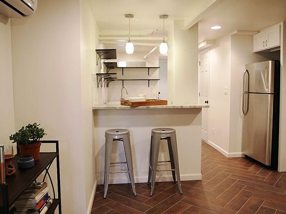 Open House: 2.17.19 11am - 4pm Recently renovated one bedroom, walk-out basement apartment in Trinidad row house. 1432 Montello Ave. NE. This is a full basement suite with a bedroom with lots of natural light and a walk-in closet; a gourmet kitchen with a granite breakfast bar and new appliances, including a stainless dishwasher; an in-unit washer/dryer; and exposed brick. The apartment provides lots of storage with a front-entrance mudroom, a walk-in closet, and extra storage in an attached utility room. It s a 7 minute walk to H Street, with dozens of restaurants, bars, coffee shops, and soon a Whole Foods. Two buses pick up directly out front (D8 goes directly to Union Station and D4 goes downtown). There is ample street parking. Utilities: Water included Internet shared $25 per month Electrical approx. $40 per month paid by tenant Shared use upon request of a large backyard with a grill and fire pit.