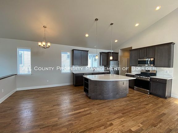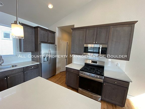 Built in 2018, and situated on a corner lot, this fantastic Longmont home is available JULY 10th! Great single family home features four bedrooms (including a main floor master), three full baths, an additional small office, and over 3,300 square feet of finished space! The great room greets you as you walk in the front door, with a spacious kitchen, open dining room, and living room with vaulted ceilings and gas fireplace. Kitchen boasts stone countertops, island with tons of storage, stainless steel appliances, a 5 burner gas range, and a large pantry. Large master bedroom is located on the main level, and has beautiful suite bathroom and large walk in closet. An additional bedroom with attached bathroom, office space, laundry room, and mudroom complete this level. Fully finished basement has two additional bedrooms, a full bathroom, extra storage and a huge rec room filled with great light. Home is complete with oversized two car garage, and patio on the side of the house that faces open space right across the street. Tenant pays all utilities and is responsible for snow removal on the front and back walkways, as well as lawn care. NO PETS and no smoking please! AVAILABLE JULY 10,2021, and looking for a lease through July 2021, with the option to renew at that time. First months rent, security deposit, and $200 move-in inspection fee all due upon lease signing.