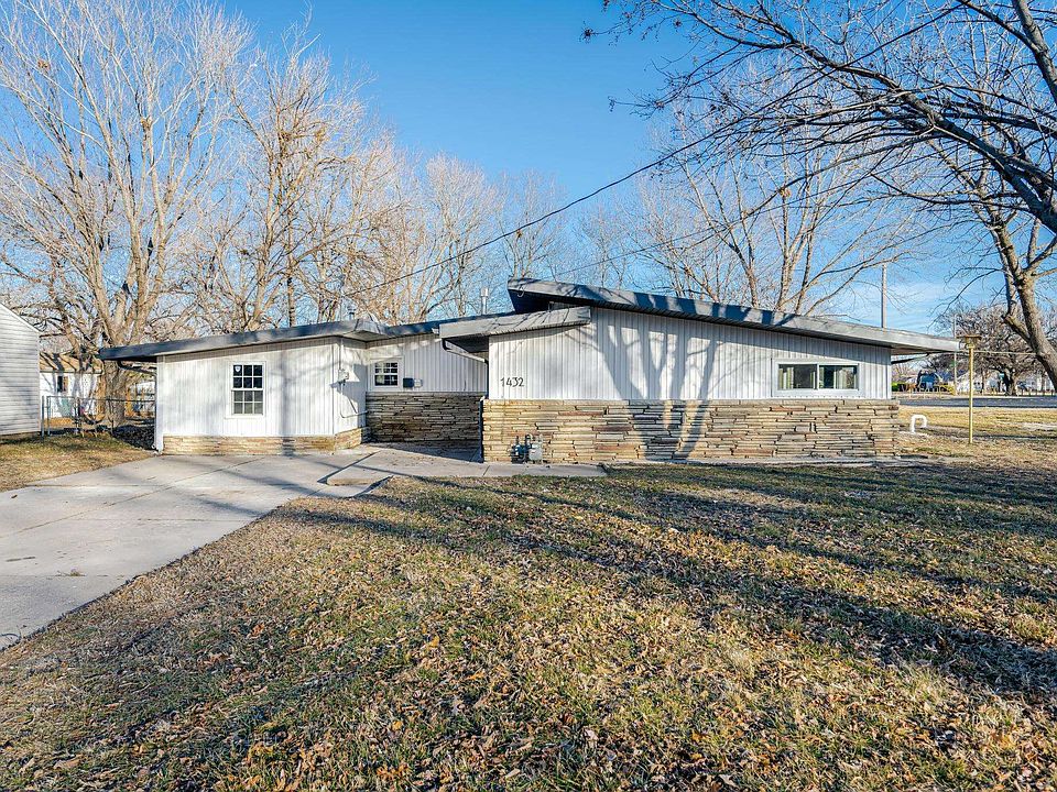 Mid Century meets Contemporary Appeal in this fresh 3 bedroom 2 bath home. Situated in a sweet neighborhood near 13th & West, this location provides quick access to 235 and West Wichita shopping and dining. With just over 1500 square feet of open concept living, this kitchen screams "lets have a party" with a large island ideal for entertaining, a new gas range (installed post photos) and a trending stainless vent hood, and concrete surfaces. Natural lighting flows freely through the living and dining area and just through the east door is an unfinished multi-use basement. Imagine a man cave, family room, office, sound studio; the options are abundant. Down the hall you will find 2 spacious bedrooms and a full bath. Down a private haul, the primary bedroom is generous in size with a full bath and a walk in closet just waiting for you to put it to work! Call the listing agent today for your personal tour.