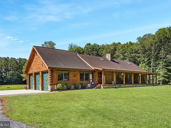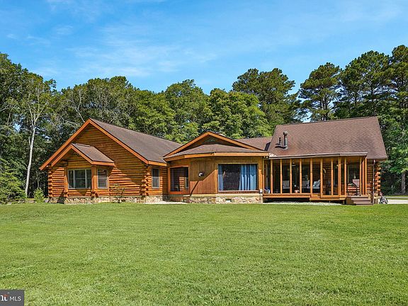 Nestled in the heart of rural Pocomoke City, sits a stunning log cabin, boasting breathtaking views across over 36 sprawling acres. Imbued with a timeless elegance and the utmost luxury, this property represents a rare opportunity to own a slice of paradise in one of Maryland's most sought-after locations. Comprising 3 spacious bedrooms+ office/flex room and 2 ½ baths, this home seamlessly blends rustic charm with modern amenities. You'll love the large covered front porch that welcomes you upon arrival, inviting you into an open concept living room, complete with a beautiful stone fireplace with pellet stove. In the kitchen you will find an island, gleaming stainless-steel appliances, and a double oven, perfect for hosting intimate dinners or grand feasts. The dining area caters to all occasions, while vaulted ceilings and a family room with a pellet stove create an ideal space to relax and unwind. The primary bedroom suite includes double vanities and an upgraded shower, providing the ultimate retreat after a long day, along with an impressive walk-in closet. An enormous, covered deck offers great space for relaxing or entertaining. There is a 3-bay attached garage with Yoder wireless garage doors, the household mechanicals, and a walkup loft for storage. Outside you will find an impressive detached garage with split system and loft. The loft is spacious, with mini splits, and a large balcony overlooking the pond and grounds. Perfect for guests or an additional office space. You will be wowed with the 40 x 60 pole barn, that offers ample space for storage or hobbies. This building is wired for your RV and all of your toys that need extra amperage. The property features a pond and over 24 wooded acres, ideal for hunting or 4-wheeling. Several deer blinds and stands are already in place for the upcoming season. The property also includes a backup generator, central vacuum, and 2 Rinnai water heaters. With Fiber internet installed, the house and outbuildings benefit from wireless internet throughout! Without a doubt, this log cabin in Pocomoke City provides the ultimate rural retreat, complete with luxurious finishes and all the modern amenities you could want or need. With so much to love about this beautifully crafted property, it's time to make your dreams become a reality.