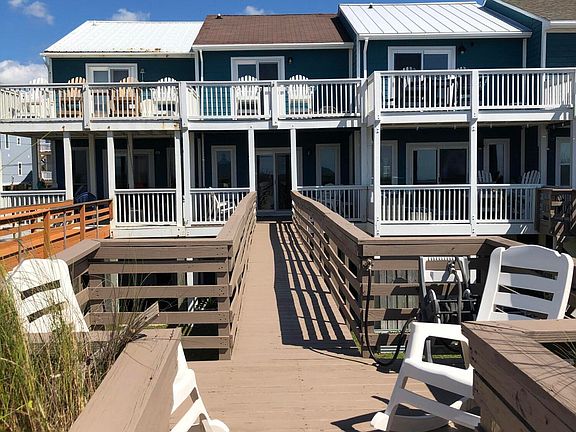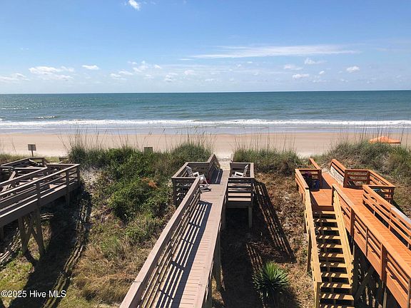 Enjoy coastal living at its best as an Owner of a deeded piece of North Topsail Beach! This Oceanfront townhouse has gorgeous views of the Atlantic Ocean. Enjoy your morning coffee on your private deck while listening to the waves breaking the shoreline. Step down off your crossover and step unto the white sand and dip your toes in the ocean. The garage is on the ground floor facing the road with steps leading up to 2nd floor living area which offer the kitchen/dining, bedroom and bath. The master bedroom and 2nd bath are on the upper level. Basic furniture and all appliances are included with some decorative items to go with Seller. Just a short drive to shopping, dining, golf course, churches and local seafood markets. Make your appointment to view!