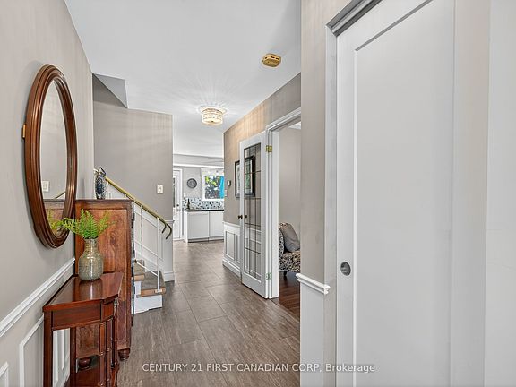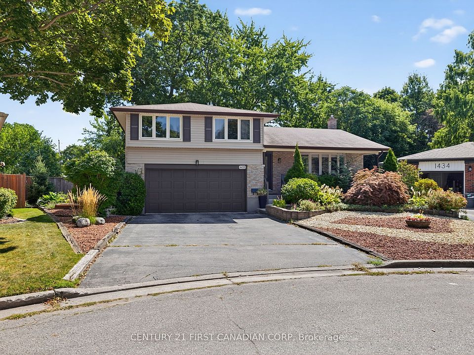 Backyard private paradise on quiet treed Byron court with huge lot. 4+1 bedroom + 2 pc ensuite + 1.5 more baths! Kitchen updated with gas range, modern cabinets, great counter space, glass and marble splash and open to dining with impressive views over the gardens and access onto your 2 tiered deck, perched over climbing roses, ornamental grasses, junipers and flowering almonds and so much more. Featuring further two ponds and fountains, private and fully fenced, vegetable gardens, a work area and adorable garden shed. Truly a gardeners delight and perfect for bird and butterfly enthusiasts Boasting: high efficiency forced air furnace and A/C, vinyl clad replacement windows, updated electric panel, bonus bedroom in lower level, hardwoods, 2 floor laundry potential, French doors, retractable electric awning, sprawling front covered porch, wood burning fireplace and excellent storage! Steps to Warbler Woods, Springbank Park, Schools, Cafes and Shops of Byron. Come book a private viewing!!