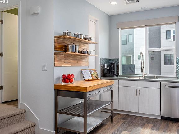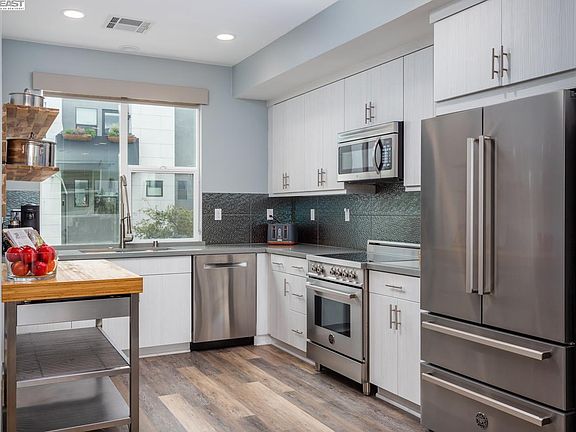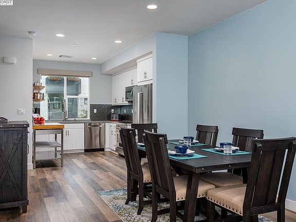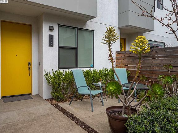 Contemporary 2 bedroom 2.5 bath, 1459 sq. ft. townhome has it all. Updated kitchen includes Silestone Countertops, stainless steel Bertazoni induction range and refrigerator with Bosch Dishwasher. First floor offers bonus room currently used as a home office. Second floor provides an open floorplan to the kitchen/living/dining room space with an outdoor deck for your bbq. Top floor with a large master bedroom, bathrooms with Piedrafina countertop and splash to go along with walk in shower. Solar powered energy efficient home with year round low electric bill, relaxing patio, low HOA, brand new children's playground minutes away! Two car side by side garage with 220V/40AMP wiring for future car charger. Too many upgrades to describe.