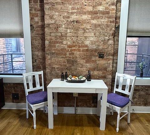 Private balconyIn-unit laundryExposed brick wallTall ceilingsHardwood floorsEquipped kitchen