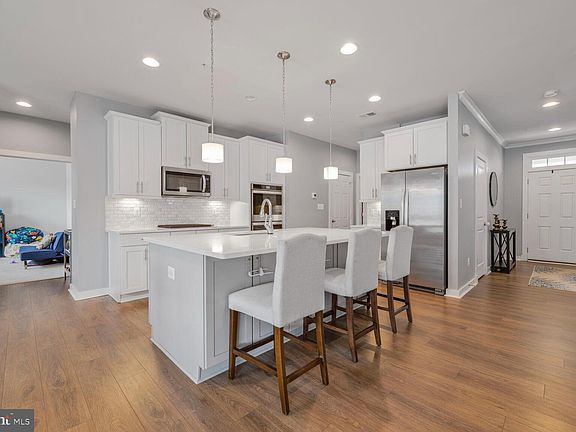 Welcome to this like-new, beautifully maintained 4-bed, 2.5-bath home in the sought-after community of Tuscarora Creek, built in 2022. Step inside to find wide plank hardwood floors, elegant crown molding in the entry and formal dining room, and recessed lighting that enhances the main living areas. At the heart of the home, the chef’s kitchen showcases custom cabinetry, tiled backsplash, granite countertops, stainless steel appliances including dual wall ovens, and a luxurious walk-in pantry. The oversized island, complete with additional storage cabinets, pendant lighting, and bar seating, is the perfect spot to enjoy your morning coffee. Designed for both comfort and entertaining, the open-concept layout flows seamlessly from the sunlit breakfast area to the inviting living room, where a cozy gas fireplace sets the scene for relaxing evenings. The formal dining space offers an elegant setting for hosting dinners, while a versatile flex room provides endless possibilities—whether as an additional main level bedroom, in-home office, media room, or kids play area—with a nearby powder room for added convenience. When ready to unwind, head upstairs to the spacious owner’s suite featuring recessed lighting, three separate closet spaces and a luxurious spa-like en-suite bath with tile floors, two separate vanities, soaking tub and large tiled walk-in shower. Three additional generously sized bedrooms share a well-appointed full bath with a dual vanity and tub/shower combo, while a conveniently located laundry room completes the upper level. The unfinished lower level, with rough-in plumbing for a future bath, offers incredible storage space and the potential to customize—allowing you to add value and personalize the home to your needs. Nestled on a spacious 7,200 sq. ft. lot, the fully fenced, flat backyard is a private retreat, perfect for summer BBQs, letting kids and pets play, starting a garden, or creating your own outdoor oasis. Enjoy community amenities including a swimming pool, clubhouse, park with tot lot, and scenic walking paths perfect for an evening stroll. With easy access to beautiful downtown Frederick, as well as Wegmans, Food Lion, Starbucks, Dunkin’ Donuts, and a variety of shopping and dining options, convenience is at your doorstep. Don’t miss this gem.