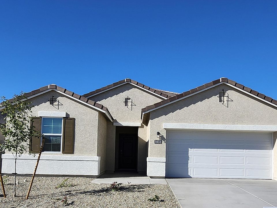 BRAND NEW construction Move in Ready!!!! SMART HOME TECHNOLOGY! single story - 4 bedroom - 2 bath - quartz countertops - 18 x 18 tile floors - large Farmers sink- smooth top range - microwave - dishwasher, FRIDGE, WASHER AND DRYER - magnetic blinds on all windows - garage door opener - EV plug- rooms pre-wired for ceiling fans - oversized White cabinets - Pest Control System - Garage Coach lights - spray foam insulation - 9' high ceilings - FRONT AND BACKYARD landscape, timer/drip system. ENERGY STAR. SMART HOME PACKAGE / ALL APPLIANCES INCLUDED