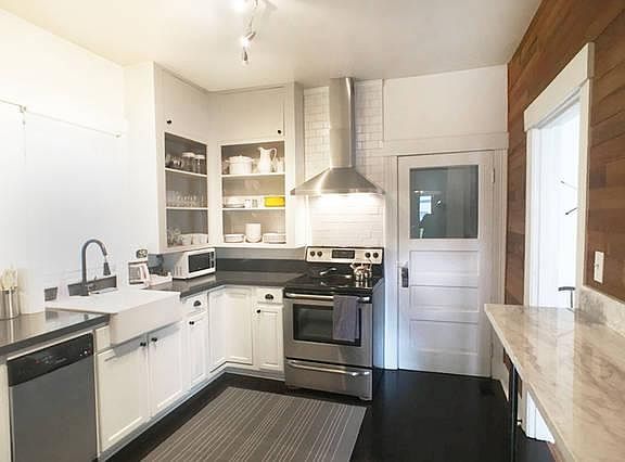 95 walk 95 bike 95 transit score. walkable to everything on hawthorne (and much of division). high style in top 2 floors of a classic craftsman duplex lovingly restored and reimagined by two Portland designers with proper fixtures and finishings from George Nelson, to Schoolhouse Electric. All stainless appliances, in suite laundry, dishwasher, premium quartz counters, cork floors in kitchen, beautifully restored fir floors throughout, and classic hex tiles in both bathrooms. Ideal central Portland living in style in a close-in SE location that can't be beat. Utilities not included. Unfurnished. (also available furnished w/ all utilities for $300/mo additional)