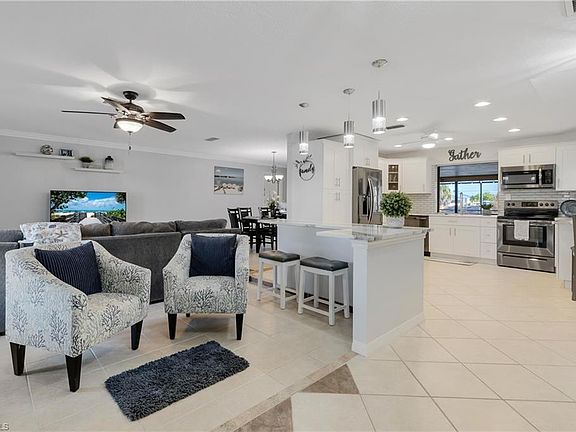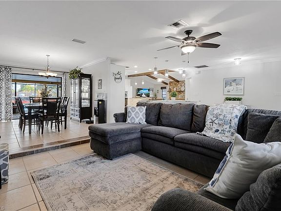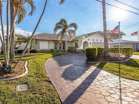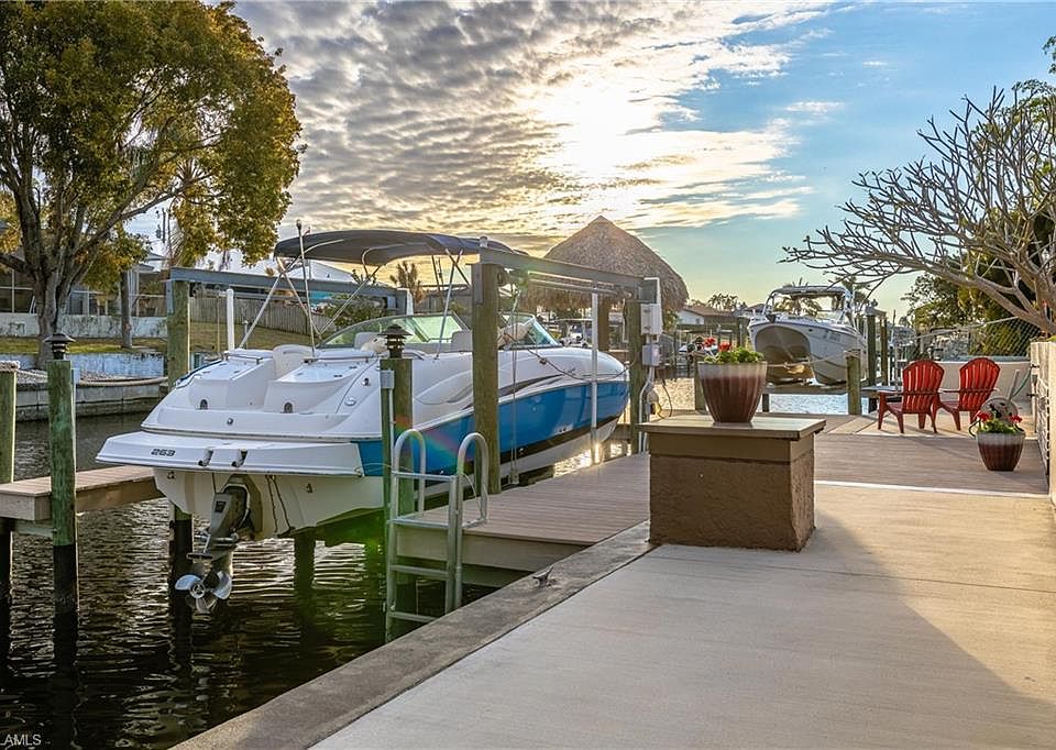 Multiple offers received. Sellers are calling for highest and best offers by 8 PM today 2/13/2022! SOUTHERN Exposure ; BRAND NEW ROOF being installed ; BOAT INCLUDED ; FLOOD ZONE X -- no mandatory flood insurance! Free yourself from harsh winters to this tropical oasis! This home has it all. It's spacious and offers incredible indoor/outdoor living, gulf access, and is so conveniently located near all of the best Cape Coral hotspots. Completely new/remodeled kitchen! Sellers have recently remodeled the guest bathroom, updated cabinets in laundry room, put in new floors in master bedroom, and added several updates down by the dock. This home features high cathedral ceilings with accent beams, gorgeous stone fireplace & mantle, a large heated pool, spacious covered lanai space, lots of room on the captain's walk composite board dock, tiki hut, and more. This location is so ideal between the Cape Coral Bridge and the Midpoint Bridge for easy access to Fort Myers and the beaches. 2016 AC. If cruising the canals, the Caloosahatchee River, and the warm waters of the Gulf of Mexico & Sanibel are your thing, then THIS IS IT!