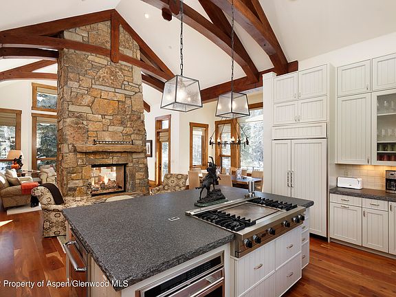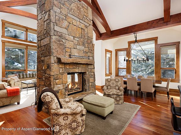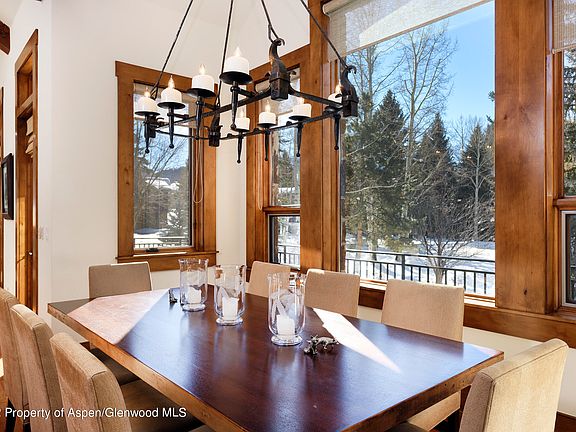 Beautifully decorated home with five-bedroom suites and two outdoor decks that overlook the Aspen golf course. Exceptional finish details are featured throughout this property with a chef's kitchen, an open floor plan, vaulted ceilings, and double-sided fireplace between the kitchen and living room. On the upper level lies the luxurious master suite with an expansive bathroom including steam shower, Jacuzzi tub, and stackable laundry in the walk-in closet. The entry level has an elegant guest master suite, 3rd guest bedroom suite, and sizable mudroom for all the mountain gear. Two additional guest room suites are located on the lower level off the spacious media room. Housekeeping Rate is $55.00/h Landscaped yard with a pathway out to the golf course and a hot tub round out the features of this exquisite West Aspen property. Enjoy this wonderfully quiet location, just a short distance to downtown Aspen. Located near the bike path and on the free Aspen shuttle route.