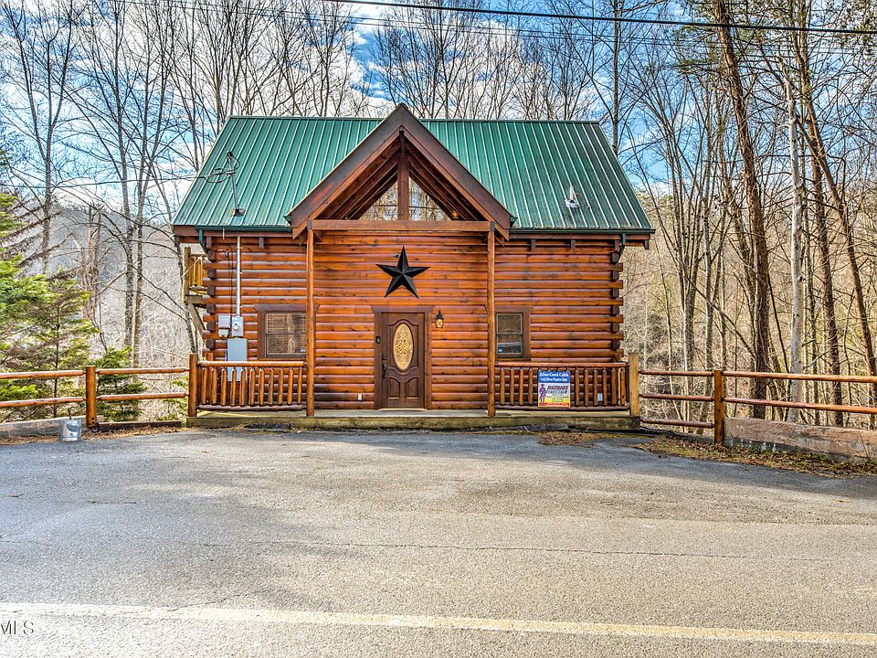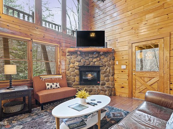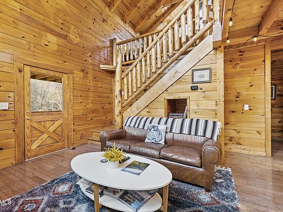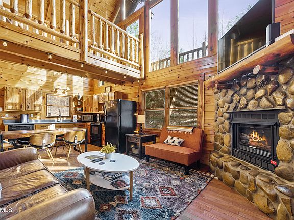 EXQUISITE LOG CABIN NESTLED IN THE HEART OF SEVIERVILLE! 1BD/1BA Walk into your own private paradise. All Hardwood flooring. Soaring tongue and groove cathedral ceilings with an upper glass wall providing sun drenched lighting. Beautiful chandelier hangs over the great room where you can enjoy your stack river rock fireplace. Eat-in Kitchen with rustic wood cabinetry. Master has own private jacuzzi. Loft is perfect for a recreation room. Walk across the catwalk to your upper balcony to relax listening to the mountain stream and seasonal stream view. Lower balcony is perfect for relaxing in the hot tub while having your favorite beverage. Entry with covered porch with log handrails. Complete seclusion but close to shopping, dining and all attractions. CALL TODAY FOR YOUR PRIVATE SHOWING!